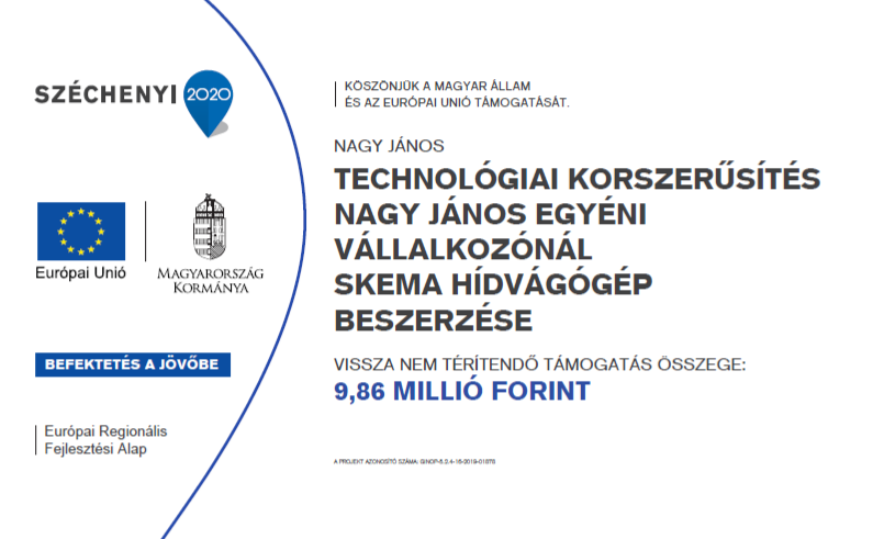 A pályázat anyagi finanszírozásával egy SKEMA 3 tengelyes forgófejes monoblock hídvágógép beszerzése valósult meg nettó 13.749.312 Ft értékben. A korszerű technológiát képviselő berendezés használatával a márvány- és gránitkövek pontos méretre vágása és egyenletes, sima vágási felület elkészítésére nyílt lehetőség.
